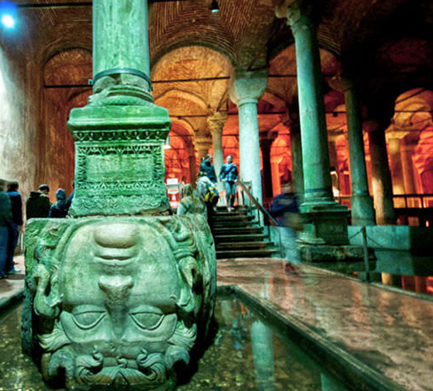 One of the magnificent ancient buildings of Istanbul is the Basilica Cistern located in the southwest of Hagia Sofia. Constructed for Justinianus I, the Byzantium Emperor (527-565), this big underground water reservoir is called as “Basilica Cistern” among the public because of the underground marble columns. As there used to be a basilica in the place of the cistern, it is also called Basilica Cistern.